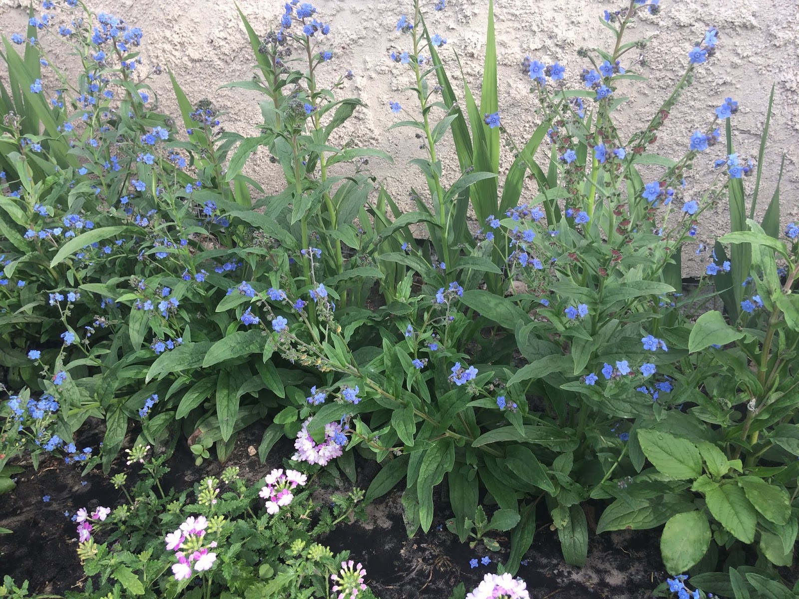 Forget me knots are in full bloom, with lovely little lacey blue flowers! Behind them you can see the leaves from the gladiolus bulbs. No signs of flowers yet, but I'm sure with this heat, it wont be long!